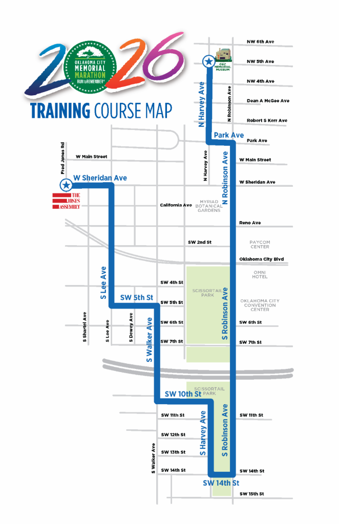 Meet under the Survivor Tree at 7:45am. The run will travel downtown #OKC and end with an after-party at The Jones Assembly where you’ll find food, drinks and participating training groups with tips for how to train for your okcMarathon event.